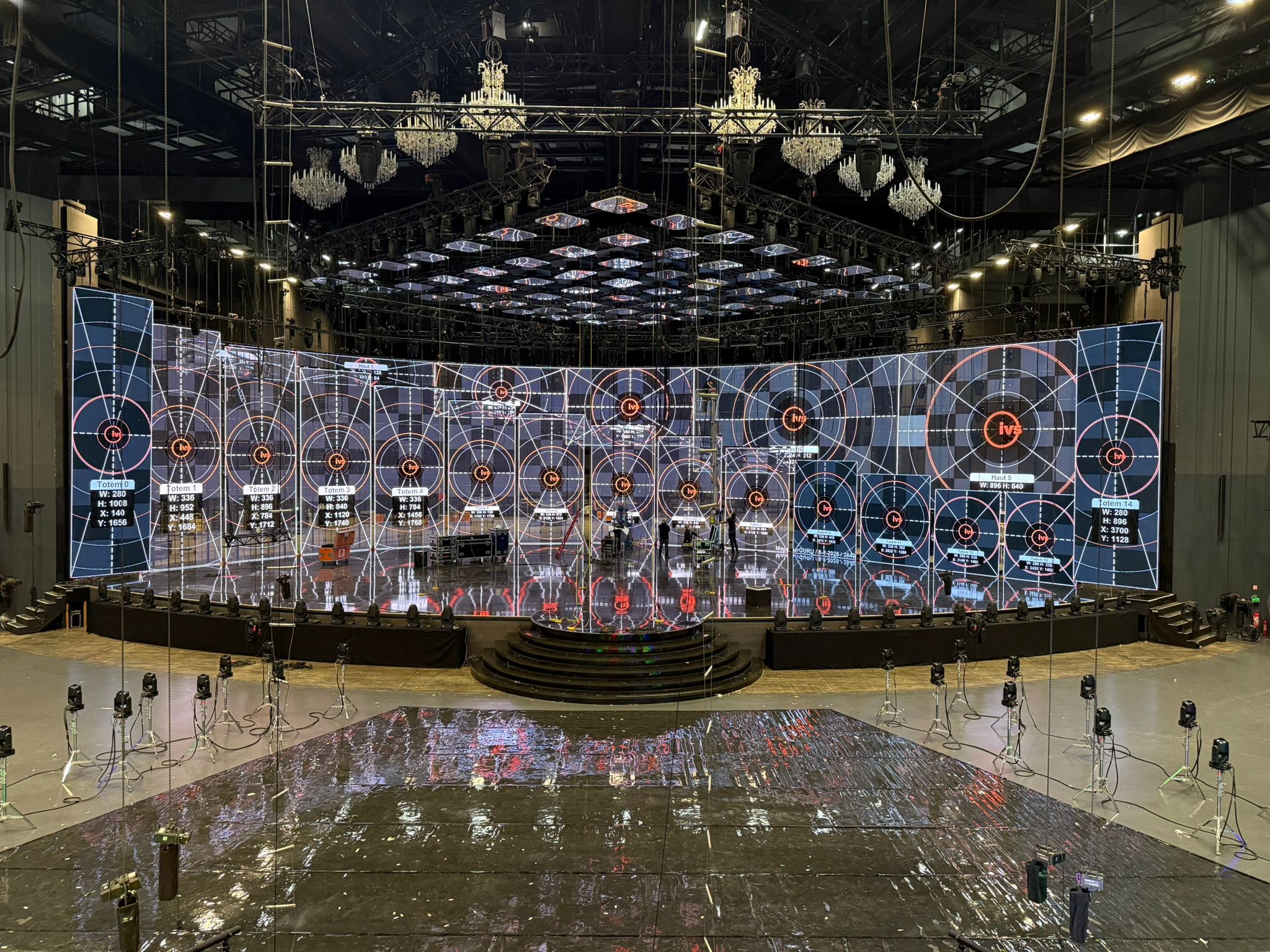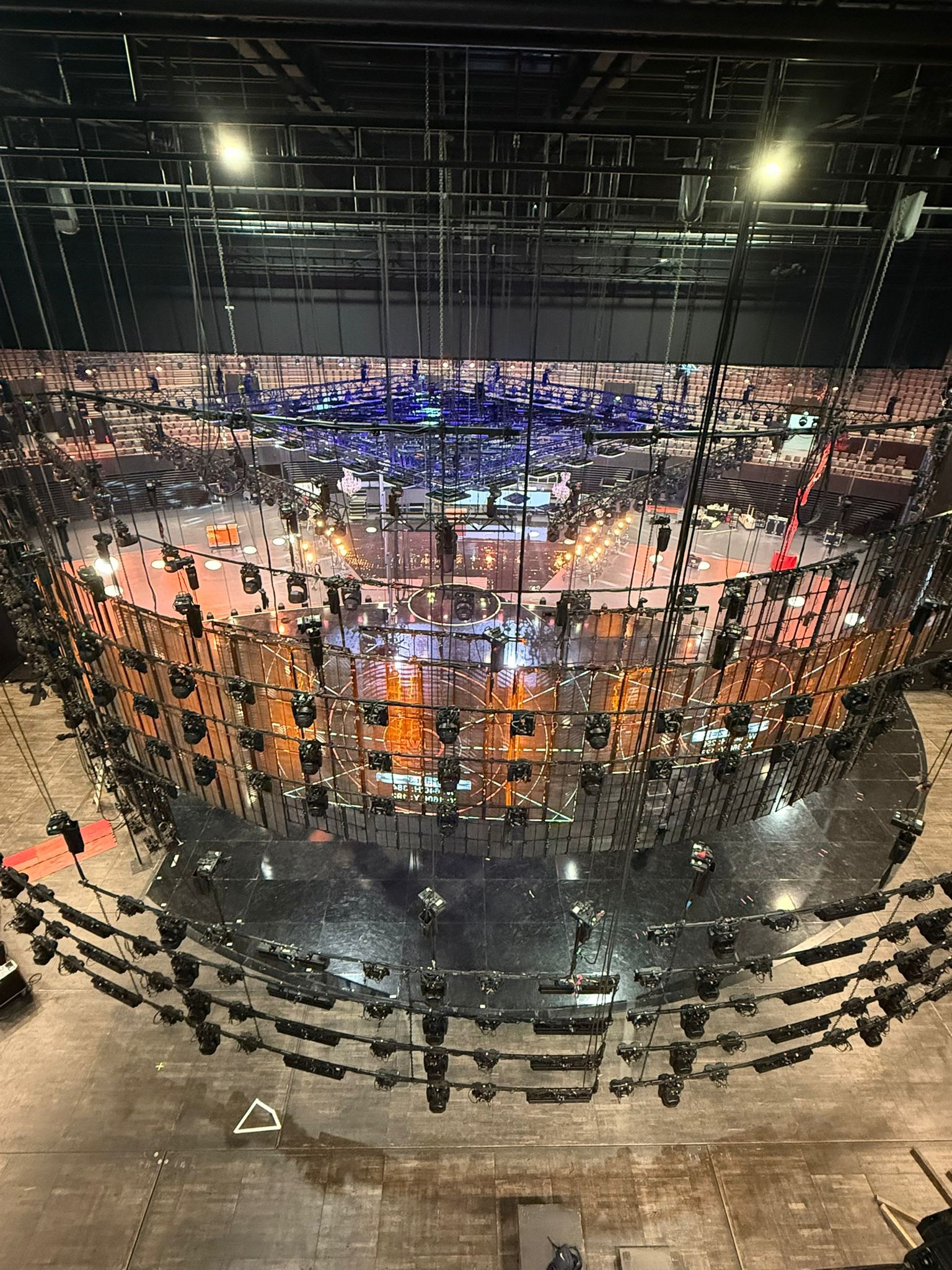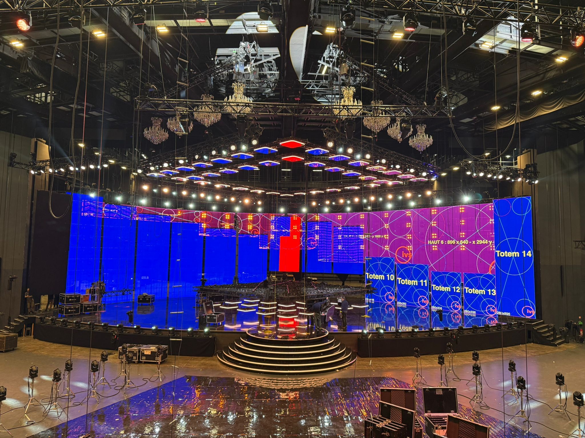 Montage technique événementiel : rigging, structures scéniques et machinerie. Ce montage technique événementiel illustre l’expertise déployée en rigging, structures scéniques et machinerie pour la réalisation d’un dispositif scénique d’envergure. La réussite de ce type de projet repose sur une coordination précise des équipes et sur la maîtrise des installations techniques. Pour ce projet, les équipes ont déployé : 1200 mètres linéaires de structures, 250 moteurs de levage. Une extension de scène en structure échafaudage de 16 × 27 m (H 1,20 m), 225 m² de praticables, 2 gradins techniques et 1 podium caméra. Un système de levage sur mesure pour mur vidéo, piloté par 8 moteurs asservis FLR, a également été conçu afin de garantir précision et sécurité lors de l’exploitation. Le projet a nécessité 4 jours de montage et de réglages, une nuit de démontage et la mobilisation de 9 semi-remorques de matériel.